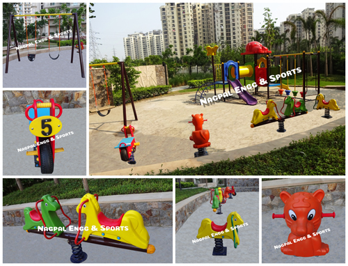 Contact us for Any type of Children Park Equipment we have wide Range of Products. Multiplay system, Swing n Slide, Merry go round, Seesaw, Spring Animals, Monkey ladder, Outdoor Gym Equipment etc.