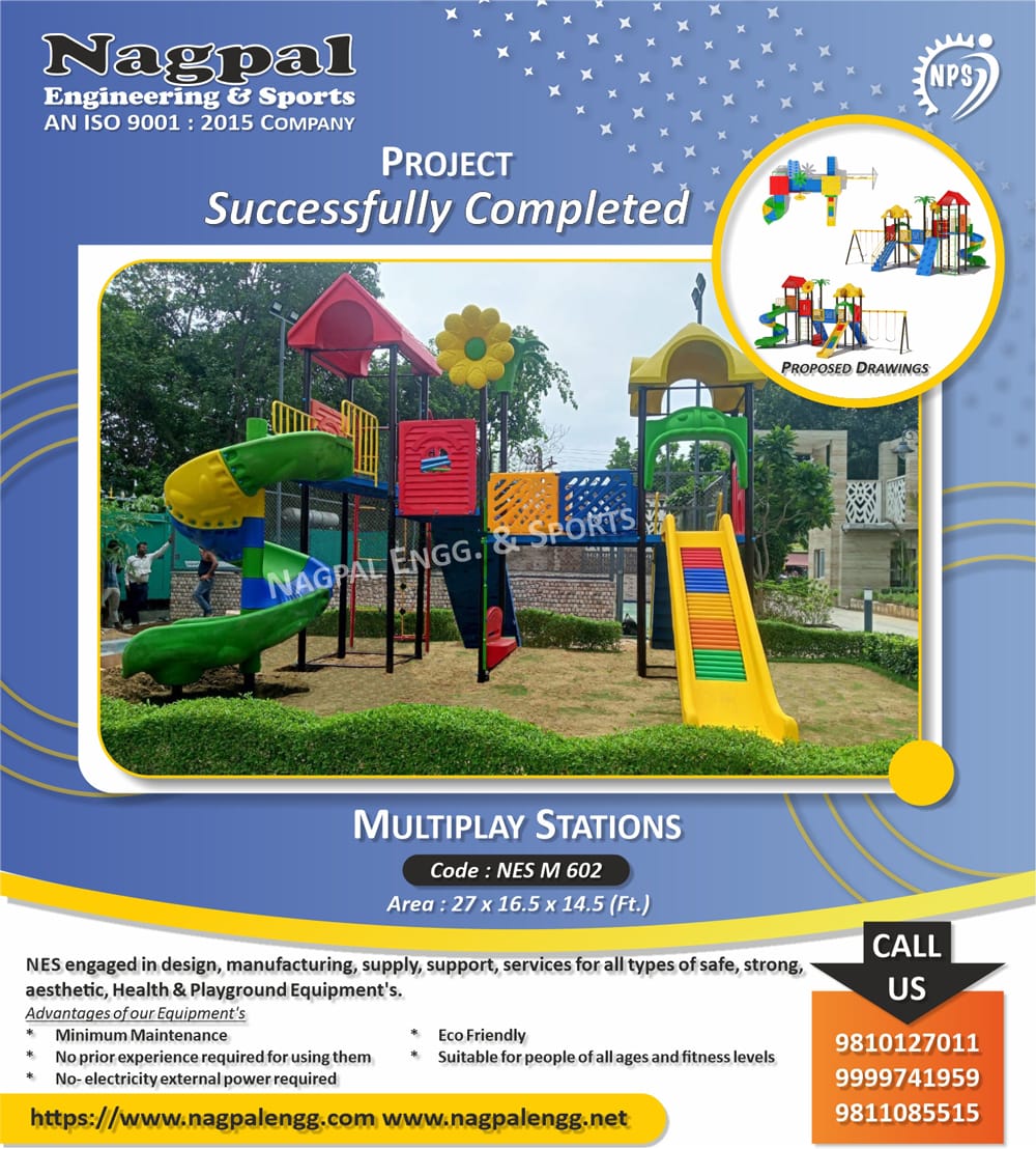 No 1 Manufacturer & Suppliers in Outdoor School Playground Equipment Industry. We have a wide range of kids play equipment's i.e., Playground Equipment, Multiplay System, Double Swing, Arch Swing, Tyre Swing, Circular Swing, Spiral slide, Wave Slide, Double Slide, Tube Slide, Climbers, Seesaw, Monkey Ladder, Open Gym Equipment, surface Flooring, EPDM, Rubber flooring etc. and we can make custom design as per your Outdoor Play Area. Supplied more then 500+ Play Equipment for children manufactured by us. Our Manufacturing Unit is situated in Faridabad, Haryana