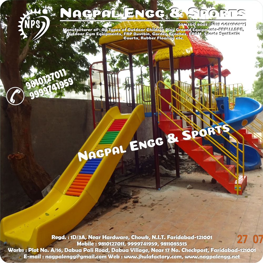 Nagpal engineering and Sports, continuously provide bigger, more fun play experiences for children across the country with our high-quality, commercial-grade school playground equipment. Our motto, "Big on Play … Low on Price, " guides us every day and helps us focus on our goal of providing affordable, durable children's playground Equipment for sale at great prices. You may ask, how do we do it? We provide endless opportunities for fun and play through our wide array of quality residential and school playground sets. Our commitment to quality ensures that kids get the most out of their playgrounds. We only use high-quality metal, plastic, recycled plastic, and Fiber glass moulded products for our park equipment and playground supplies. All of our heavy-duty plastic children's play equipment is made with standard UV inhibitors that increase the lifespan of the product and protect it from cracks and deterioration.