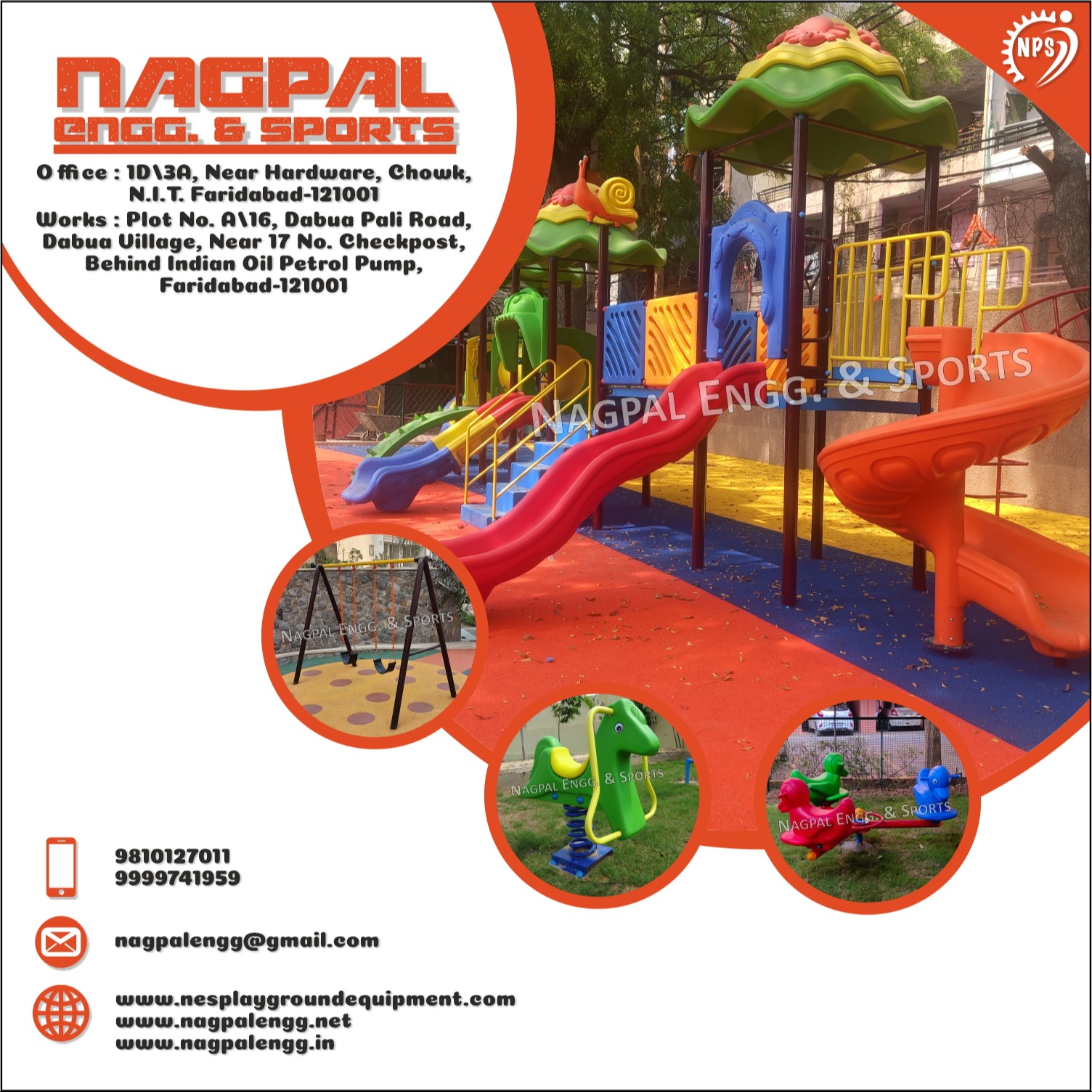 Create an engaging and safe environment for children to explore and enjoy. Contact Nagpal Engineering and Sports in Faridabad today to discover how our Multiplay systems can transform your playground into an adventure-filled destination! Mob: 9810127011, 9999741959 Email: nagpalengg@gmail.com