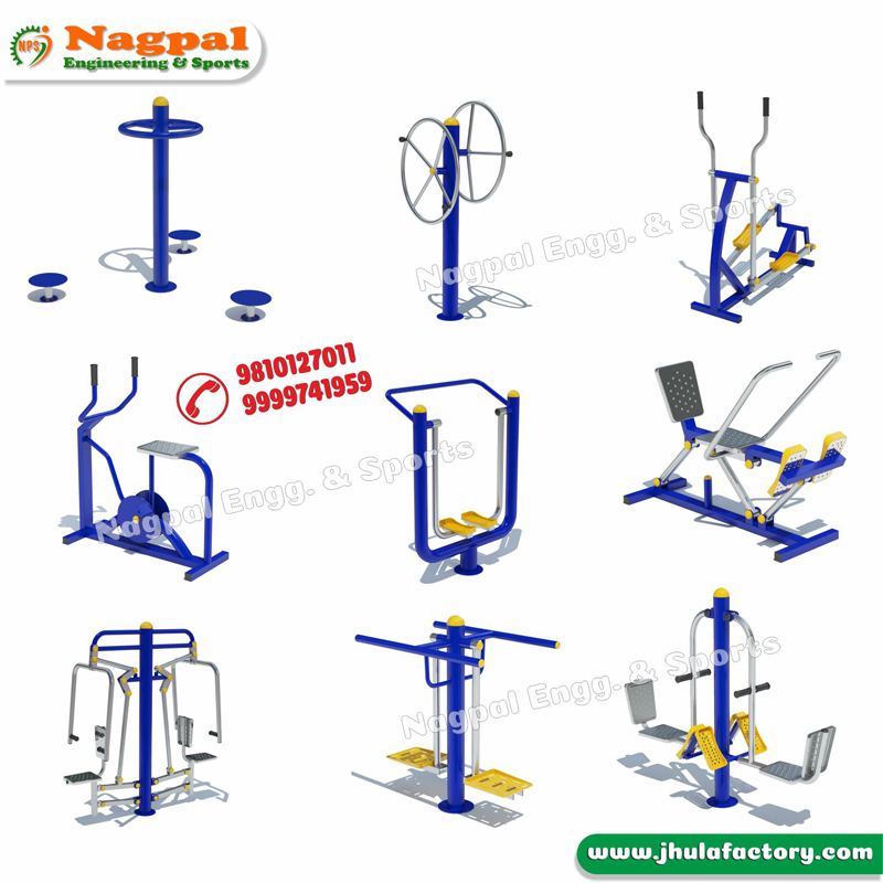 Nagpal Engineering and Sports Provide Wide Range of Outdoor Gym Equipment like Twister, Arm Wheel, Air Swing, Cross Trainer, Air Walker, Chest Press, Sky Walker, Push Up Bar, Leg Press, Rowing Machine, Tai Chai Wheel etc