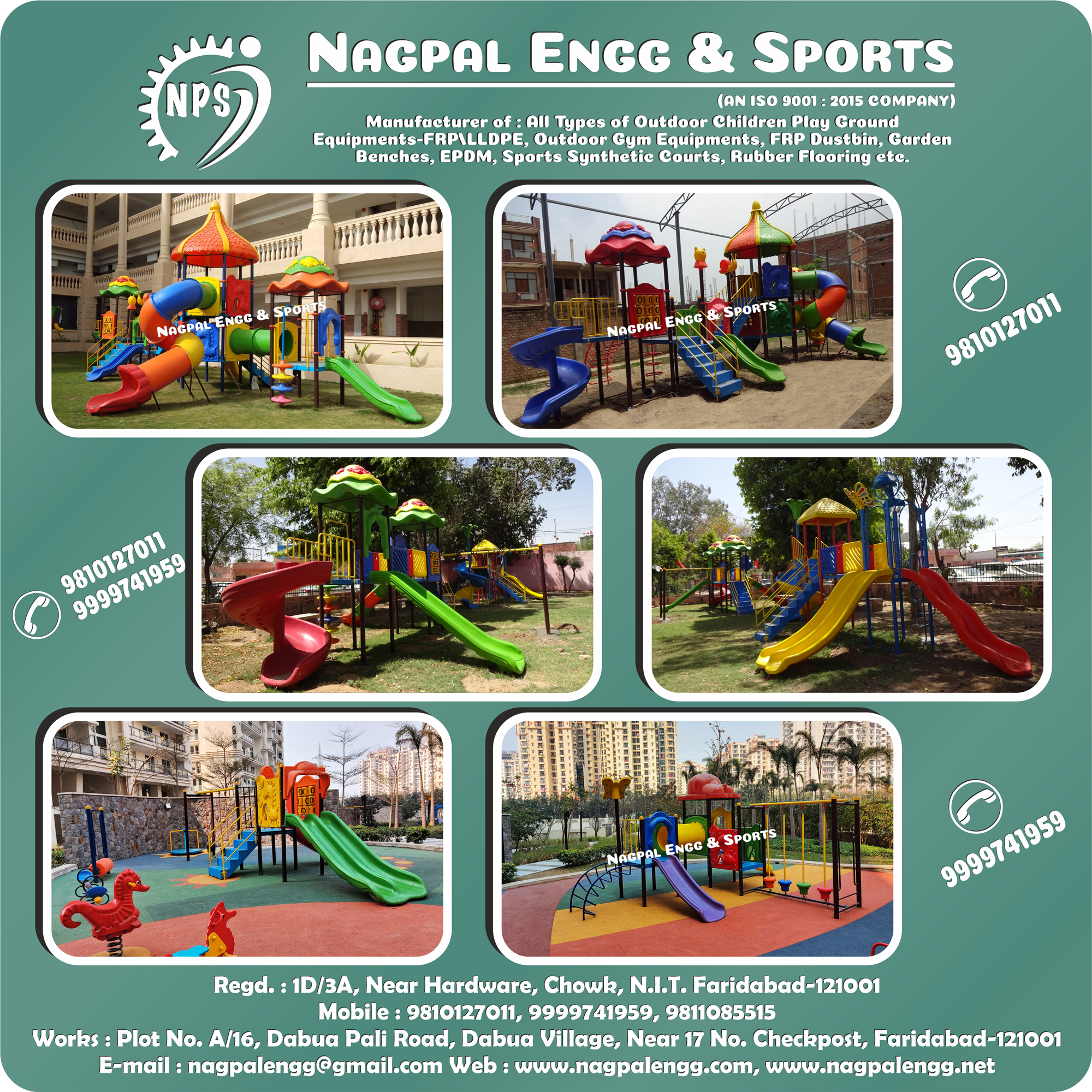Leading Manufacturer and Supplier of Outdoor Playground and Gym Equipment in India. Multiplay system, School playground Slide, Park Swing, Seesaw, Merry Go Round, Monkey Ladder, Fancy Dustbins, Bridge Ladder, Jungle Gym, Climber, Chain Swing, Swing Basket, Triply Slide, Spiral Slide, Wave Slide, Double Seat Swing, Seesaw.