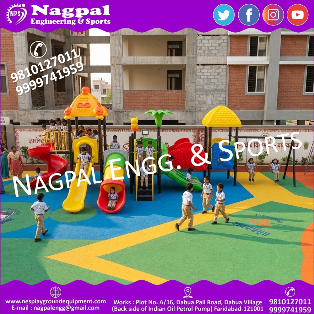 Leading manufacturer of FRP and LLDPE Multiplay Systems. Completed 500+ projects in 5 years. Durable, safe, and colorful designs for schools & parks. Supply all over India. High-quality Swings, Slides, & EPDM Flooring. Call Nagpal Engineering & Sports at 9810127011 for a custom quote. Display URL: nesplaygroundequipment.com/play-systems