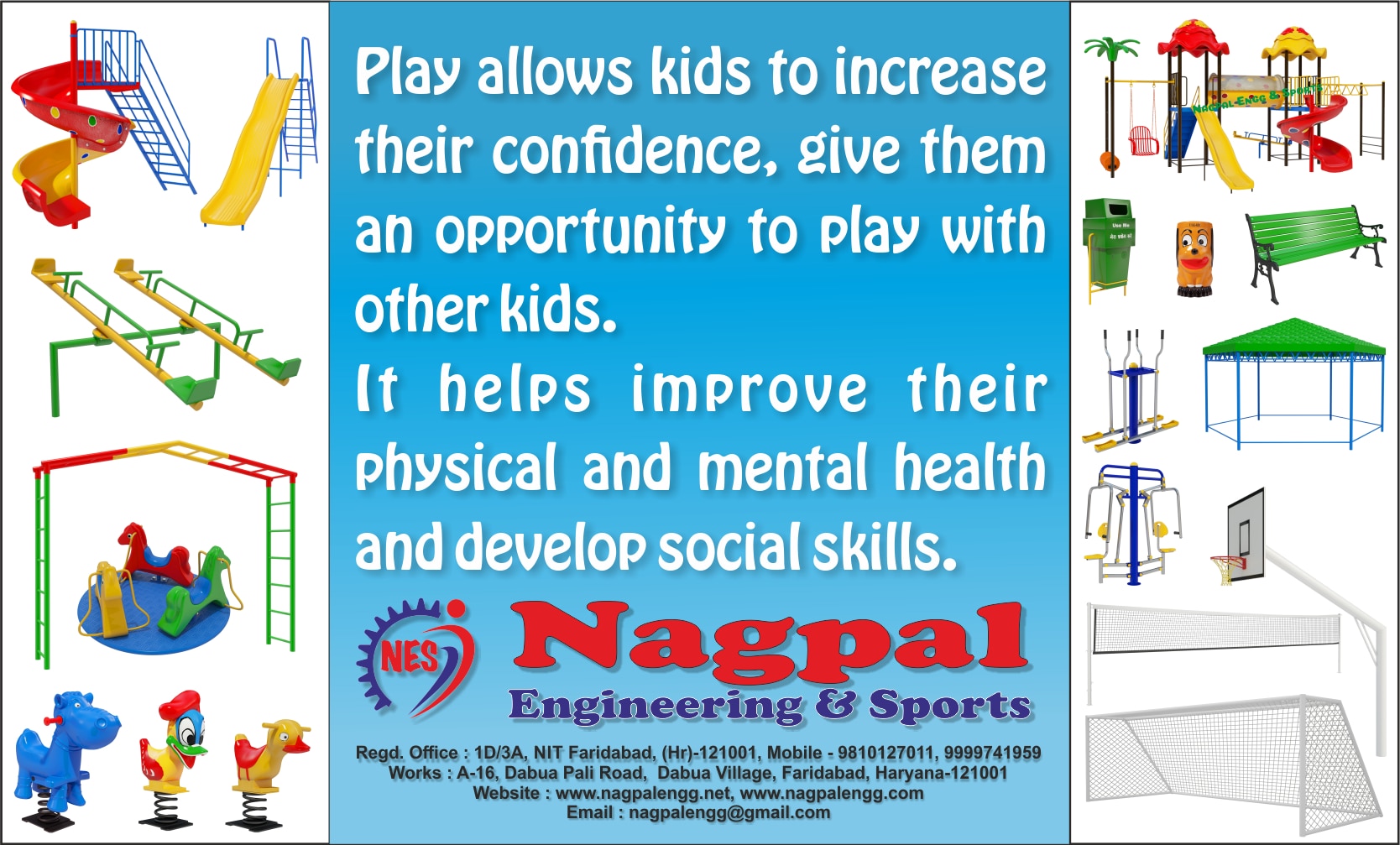Each category features a wide range of designs, ensuring that whether you are setting up a small school play area or a massive public garden, Nagpal Engineering and Sports is your one-stop destination for quality, safety, and fun.