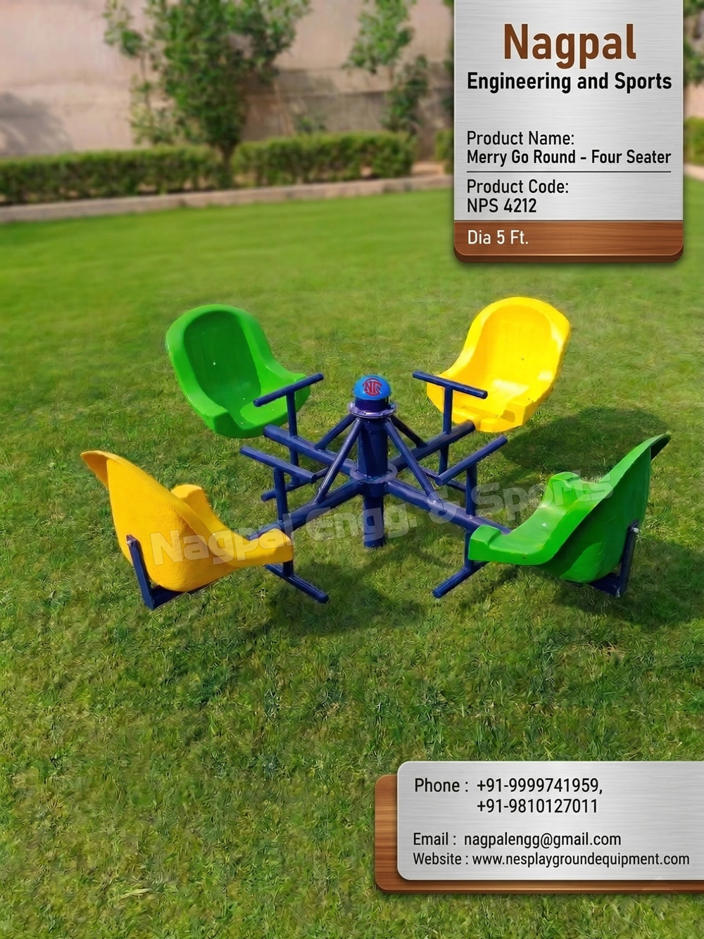 Merry Go Round - Four Seater Product Code: NPS 4208 Product size 5 x 5 x 3 Ft Metal Structure Seat - FRP MOQ: 04 Pcs Capacity -04 Children